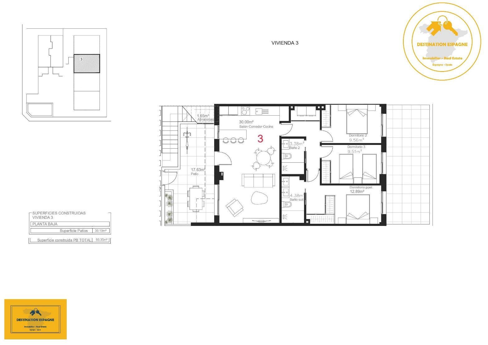 Caractéristiques: 3 chambres, 2 salles de bain, Cuisine ouverte, Salle à manger, Salon ouvert, Terrasse de 21,56 m2 , autre Terrasse de 17,63 m2 ……