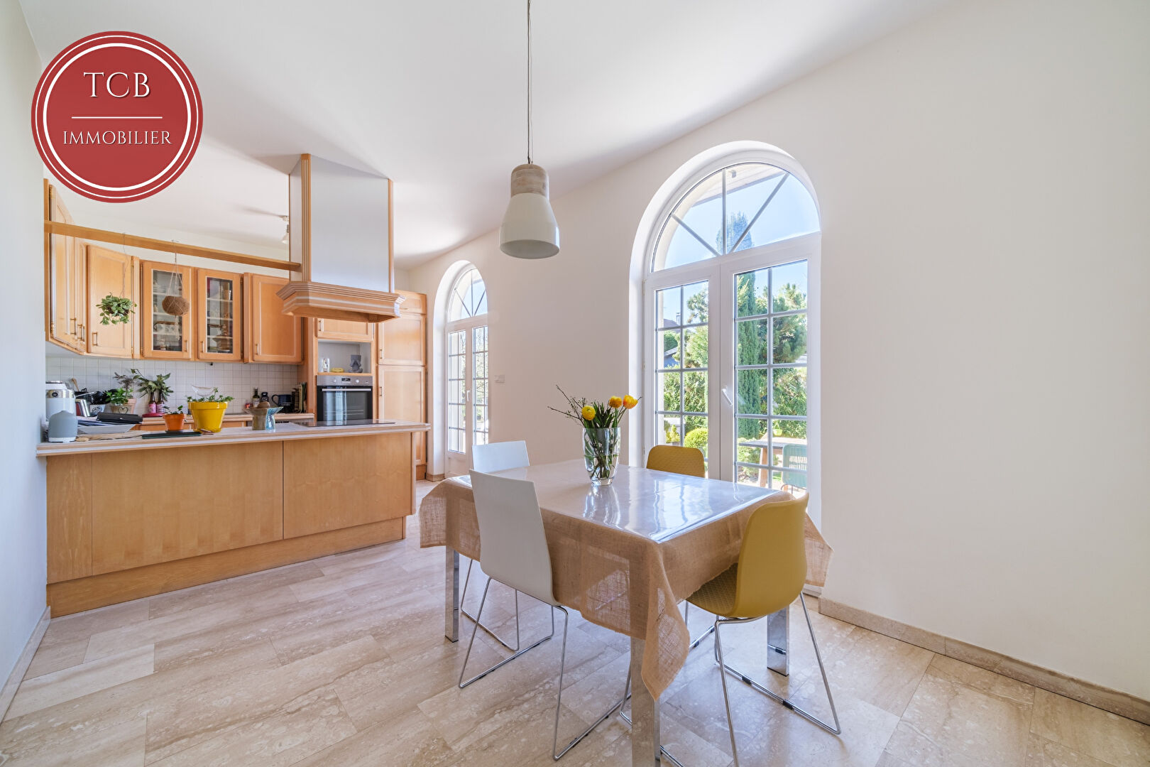-Un vaste séjour cathédrale de plus de 75 m², avec son sol en marbre, baigné de lumière et une cheminée pour des soirées cocooning.