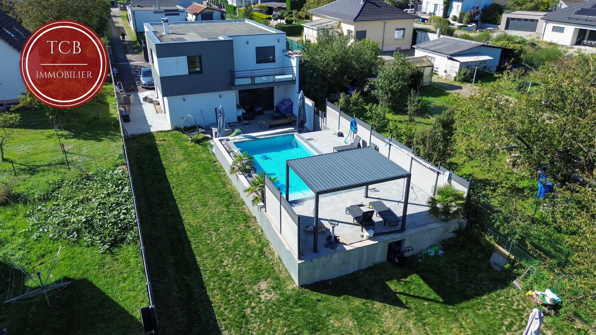 TCB Immobilier bietet Ihnen exklusiv dieses freistehende Haus in einer ruhigen Wohngegend in Cernay an. Dieses moderne, 165 m² große Haus wurde 2021 auf einem Grundstück von ca. 11 Ar erbaut und besticht durch seine großzügigen Volumen, seine funktionale Raumaufteilung und seine Dienstleistungen. Es ist auf einer Ebene bewohnbar und setzt sich wie folgt zusammen. Im Erdgeschoss finden Sie: – Eine Eingangshalle. – Einen großzügigen Wohnbereich von 70 m² mit ausgestatteter Küche, Wohnzimmer und Lounge, aufgewertet durch eine elegante Marmortreppe. – Einen Mehrzweckraum von 12 m², der als Schlafzimmer oder Büro genutzt werden kann. – Ein Badezimmer mit WC. Im Obergeschoss bietet der Schlafbereich: – Eine 24 m² große Master-Suite mit Ankleideraum, eigenem Bad und Balkon. – Drei weitere Schlafzimmer (2 Schlafzimmer mit 11 m² und 1 Schlafzimmer mit 13 m²). – Ein Badezimmer mit Dusche, Badewanne und WC. Außenbereich: – Eine große Terrasse, ein Pergolabereich, ein Swimmingpool und ein sorgfältig angelegter Garten laden dazu ein, die schönen Tage in vollen Zügen zu genießen. – Eine große Garage mit vom Haus aus zugänglicher Waschküche sowie mehrere Parkplätze runden das Ensemble ab. Technische Leistungen: – Fußbodenheizung im gesamten Haus, bereitgestellt durch eine Daikin-Wärmepumpe mit Fußbodenkühlungsfunktion. – Elektrische Rollläden mit verstellbaren Lamellen (Typ BSO). – Motorisiertes Garagentor. – Kamin mit Einsatz im Wohnzimmer. Lage: Die Stadt Cernay hat viele Vorzüge. Mit ihren Schulen, ihren zahlreichen Geschäften und ihrem Freizeitgebiet bietet die Stadt ein praktisches und angenehmes Wohnumfeld. Dank der idealen Lage können Sie Mulhouse, Colmar oder Belfort in nur 20 Minuten oder sogar die Schweizer Grenze in knapp einer halben Stunde erreichen. Unverzüglich besuchen.