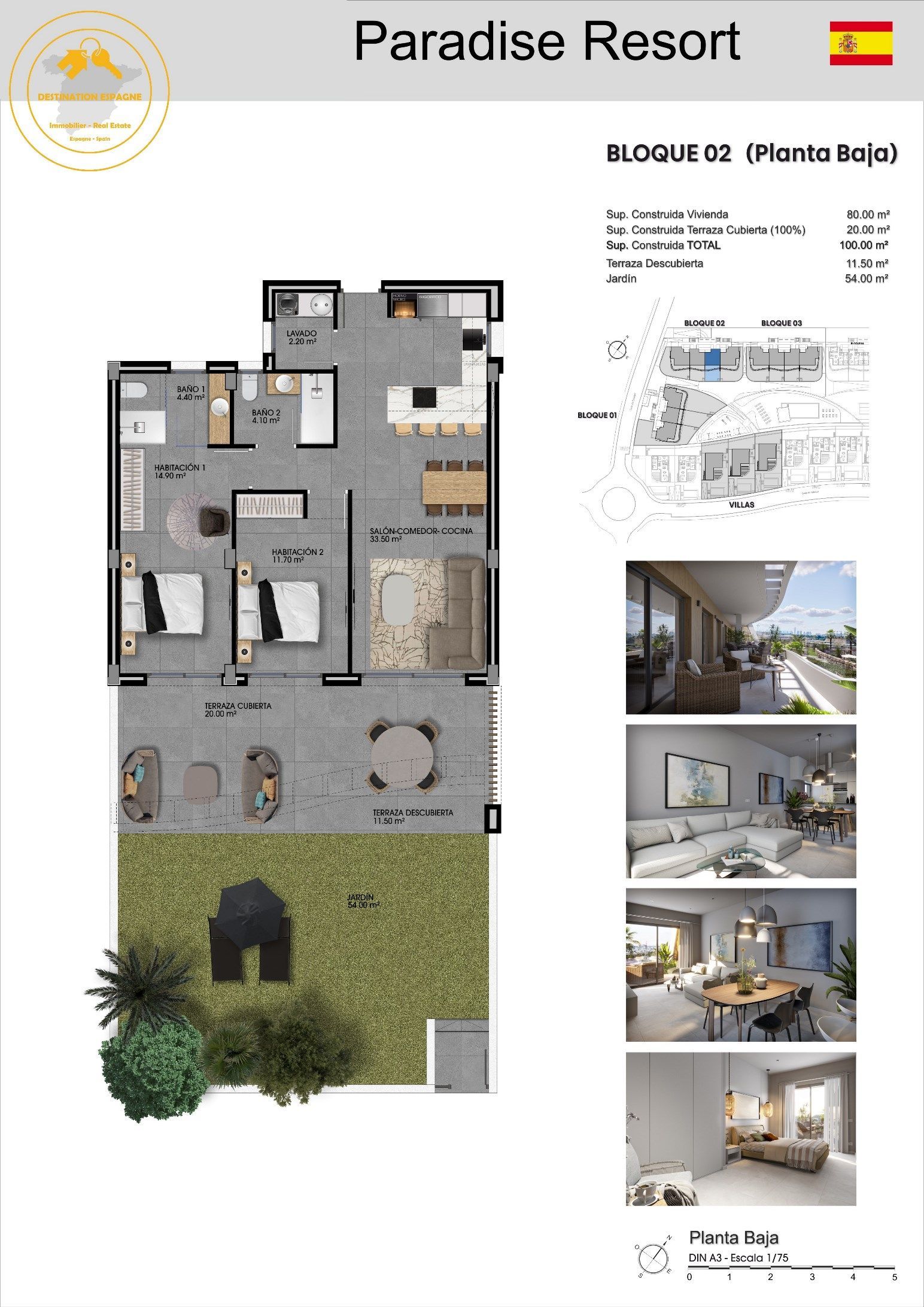 Caractéristiques : 2 chambres, 2 salles de bain, Cuisine ouverte, Salle à manger, Salon ouvert, Terrasse Couverte de 20 m², Terrasse de 11,50 m2, Jardinet de 54 m2 . …..