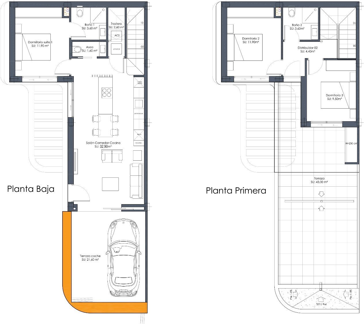 Caractéristiques: 3 chambres , 2 salles de bain , Cuisine ouverte, Salle à manger, Salon ouvert, Grande terrasse de 43 m2, Parcelle de 252 m2…. etc …