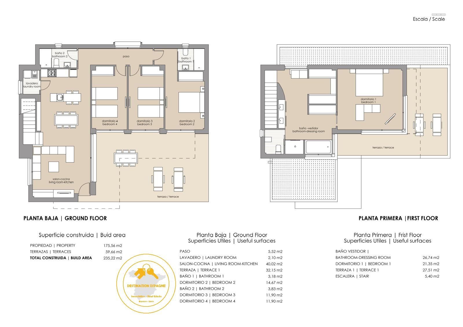 Caractéristiques: 4 chambres, 3 salles de bain, Cuisine ouverte, Salle à manger, Salon ouvert, Piscine, Grande terrasse de 32,15 m2 , Grande terrasse de 27,51 m2 devant la chambre du 1er étage. …