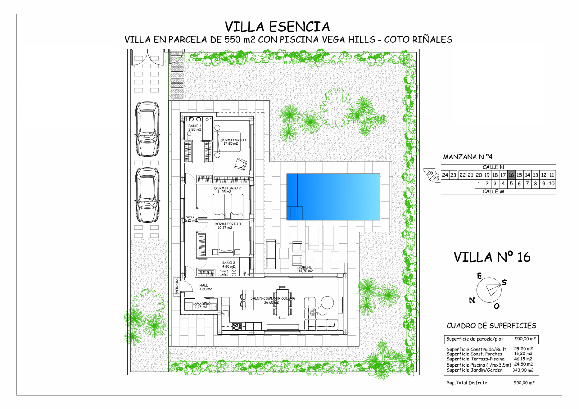 – Cuisine équipée avec plan de travail et façade en Silestone et appareils électroménagers (lave-linge, four, plaque vitrocéramique, hotte aspirante, lave-vaisselle et réfrigérateur, aérotherme de 150 litres.
