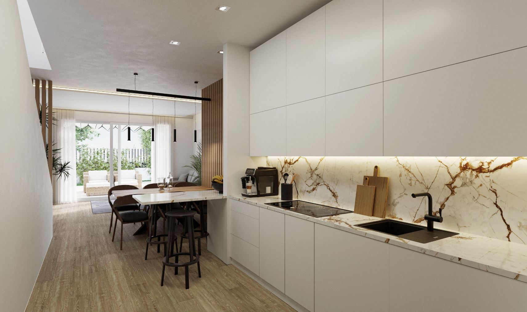Caractéristiques: 3 chambres, 3 salles de bain, Cuisine ouverte, Salle à manger, Salon ouvert, Grandes Terrasses de 46 m², Sous-sol intégral de 93,54 m2, Jardin ….etc….